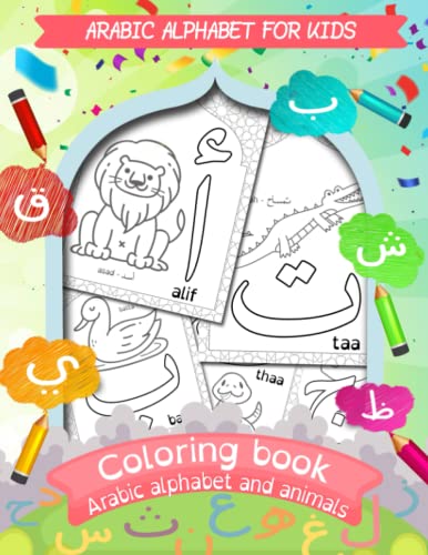 Arabic Alphabet Coloring Book With Aninmal: A fun and simple coloring book for kids to learn the arabic alphabet