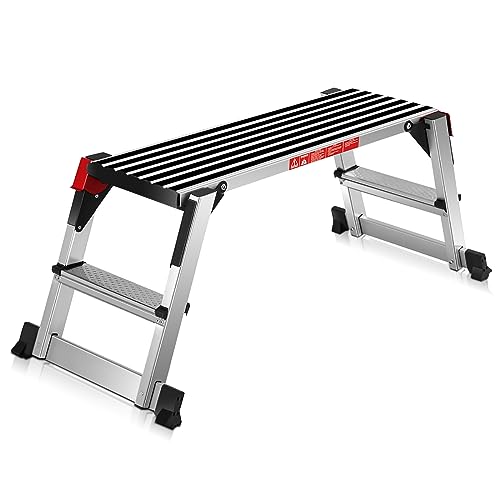 COSTWAY Arbetsplattform i aluminium, hopfällbar arbetsbänk med halkfria mattor, arbetsplattform 150 kg lastkapacitet, stegbänk med säkerhetslås, stegstege för hem, kontor, verkstad och garage, silver