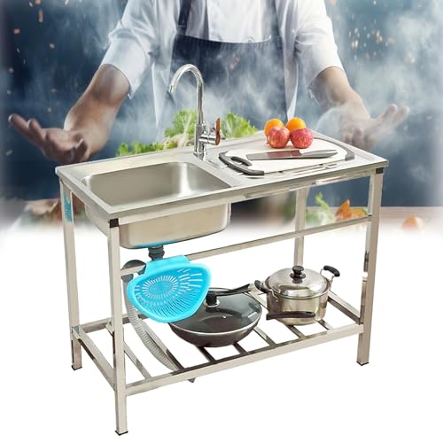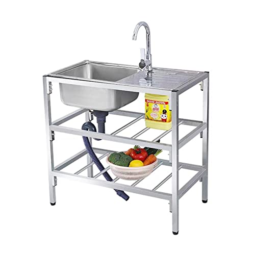 Handfat för kommersiellt bruk, fristående utekök Camping diskbänk, tvättstuga, bärbar diskbänk i rostfritt stål 304 för att diska, m/arbetsbänk kran avloppsbräda, för tvätt, garage (Color : Single c