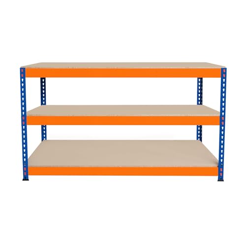 Arbetsbänk för Garage S-Rax 3 Nivåer | 150cm x 60cm x 90cm | Kapacitet per Nivå 300kg | Skruvfri Montering | 2 Förstärkta Stödbommar | Gummifötter | Arbetsbord för Verkstad, Lager, Depå