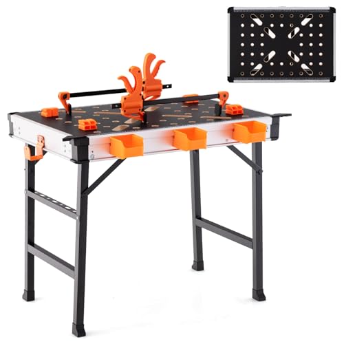 COSTWAY Hopfällbar arbetsbänk, arbetsbord, justerbar höjd 107 x 53 cm med 450 kg bärkraft, svetsbord, arbetsbord med 2 stångklämmor och bärhandtag, verktygsbord för garage verkstad