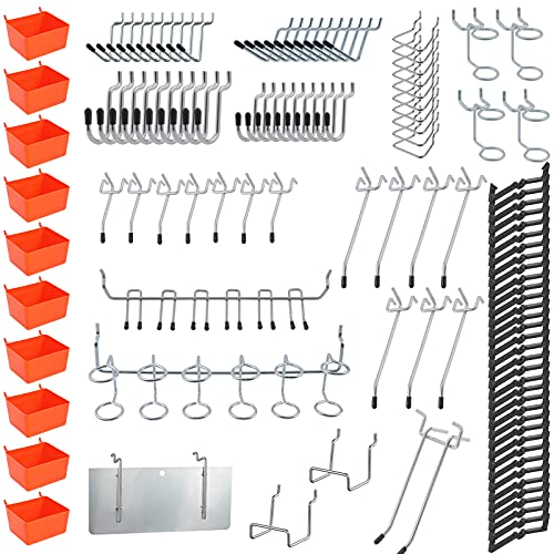 Knpwer Sortiment i 144 delar med krokar, behållare och fästen för pinnbräda för att organisera olika verktyg för garage, arbetsbänk och kök