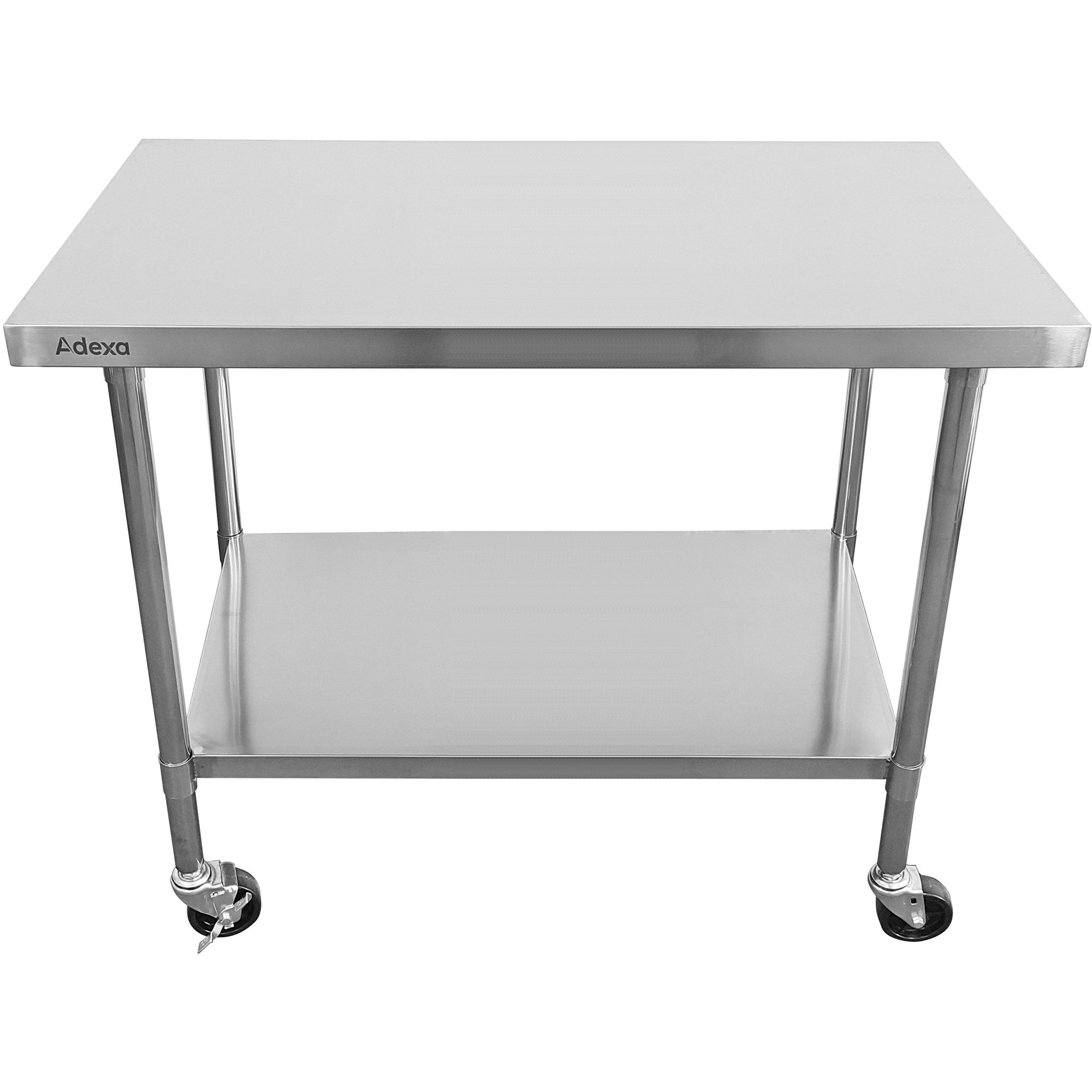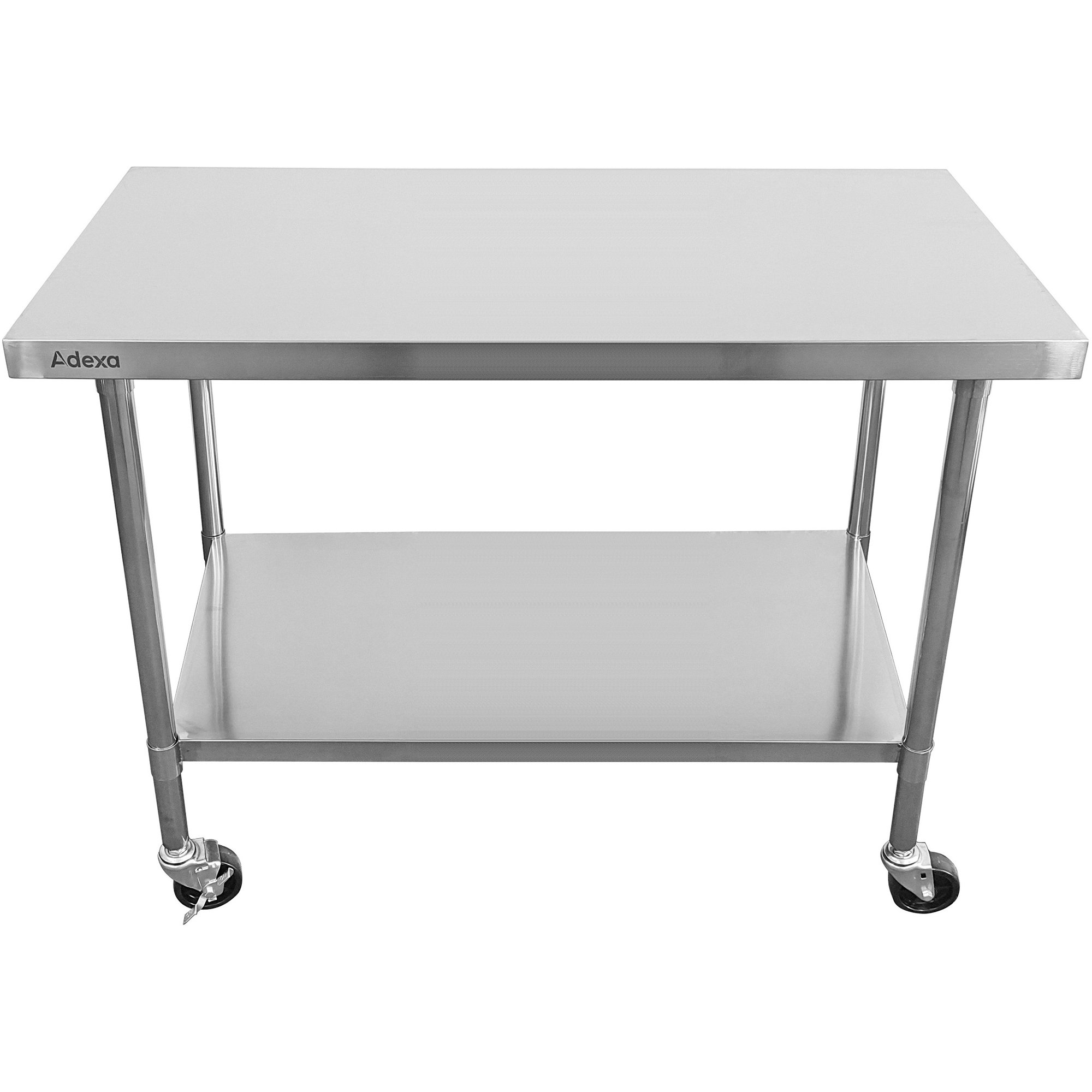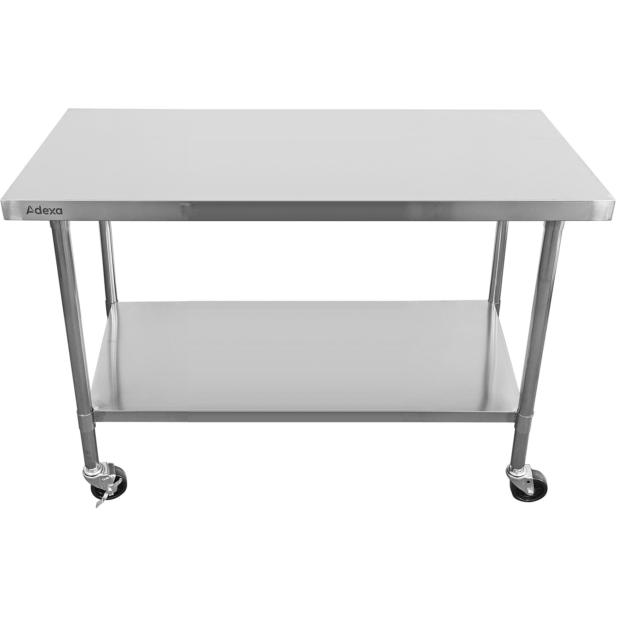 Arbetsbänk med Hjul & Justerbara fötter Rostfritt stål Underhylla 1200x600x900mm | Adexa WT60120CWO