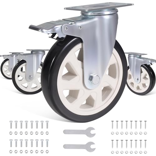 W B D WEIBIDA 8-tums tunga hjul med sidobroms, industriella plåthjul med aluminiumkärna, lastkapacitet 6000 lb, slitstarka polyuretanhjul för arbetsbänk, verktygslåda och industri, uppsättning om 4
