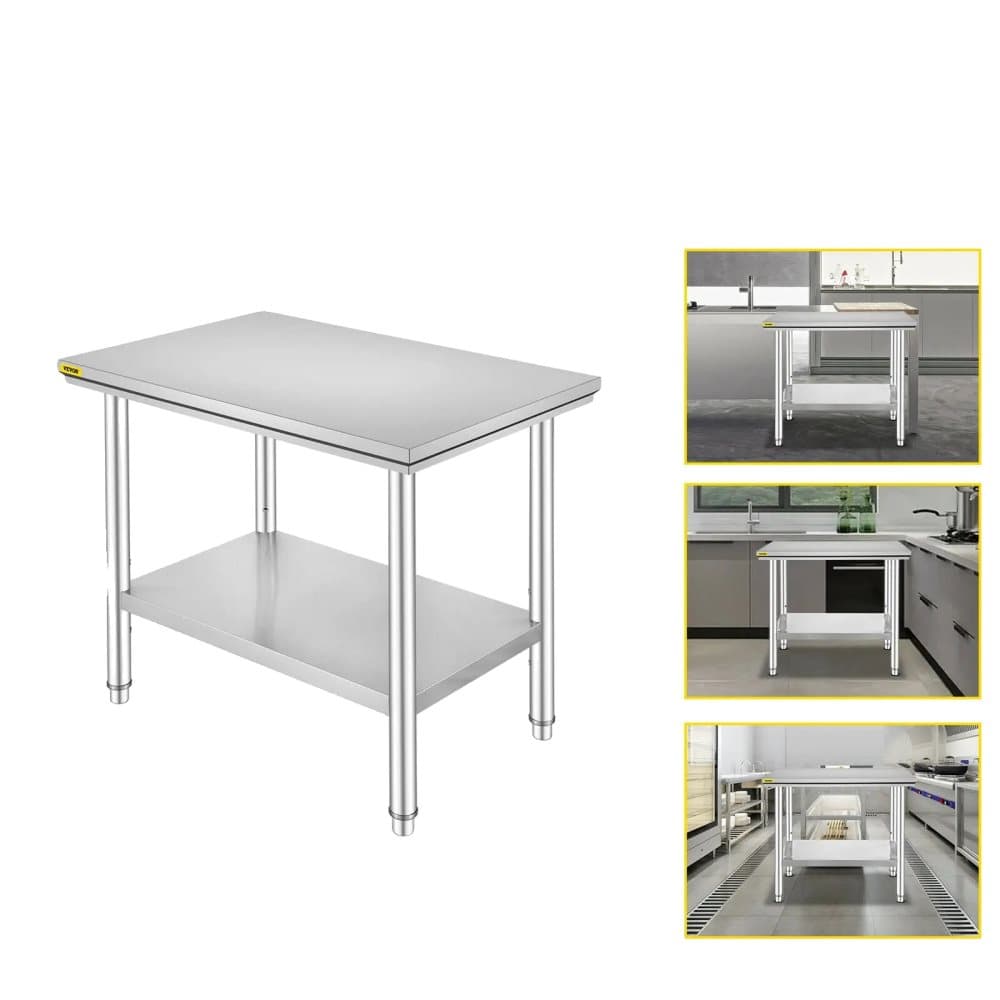 Kök Arbetsbänk, 330LBS Kapacitet, Justerbar Hylla & Fötter,35x24x32 tum 286LB