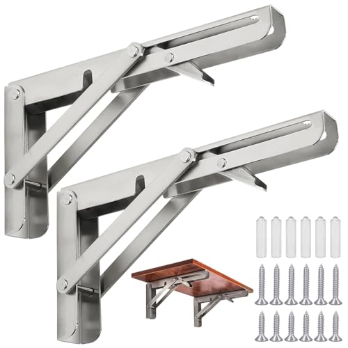 2 stycken fällbara konsoler, tung last, 300 mm, hopfällbar konsol, rostfritt stål, fällhylla, väggbord, fällbara hyllkonsoler, väggbord, platsbesparande för hem, kök, kontor, gör-det-själv arbetsbänk,