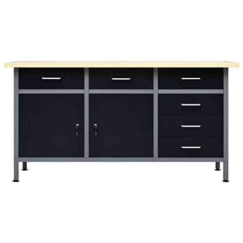 Tidyard Arbetsbord arbetsbänk arbetsbord packbord med lådor svart 160 x 60 x 85 cm stål