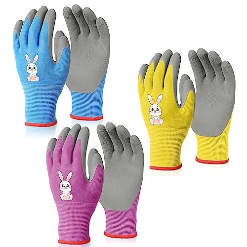 OSDUE 3 par trädgårdshandskar för barn, skyddshandskar handskar, med skumgummibeläggning för trädgård och arbetshandskar för flickor och pojkar (för 6–9 år)