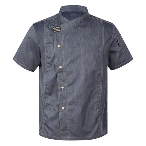 Freebily Kockjacka Män och Kvinnor Unisex med Knappar Kockjacka Restaurang Kock Dividerade Kortärmade/Långa Ärmar Arbetskläder Kök Mensa, Grå A, XXL