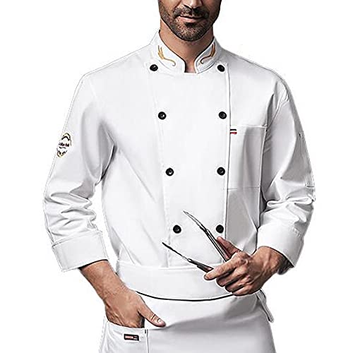 Kockkläder för män unisex kockjacka jacka, hotell/kök långärmad dubbelknäppt uniform för män och kvinnor, andningsbart kök arbetskläder (färg: vit, storlek: C (XL))