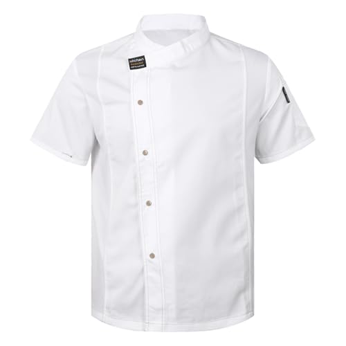 Freebily Kockjacka Män och Kvinnor Unisex med Knappar Kockjacka Restaurang Kock Dividerade Kortärmade/Långa Ärmar Arbetskläder Kök Mensa, Vit A, XL