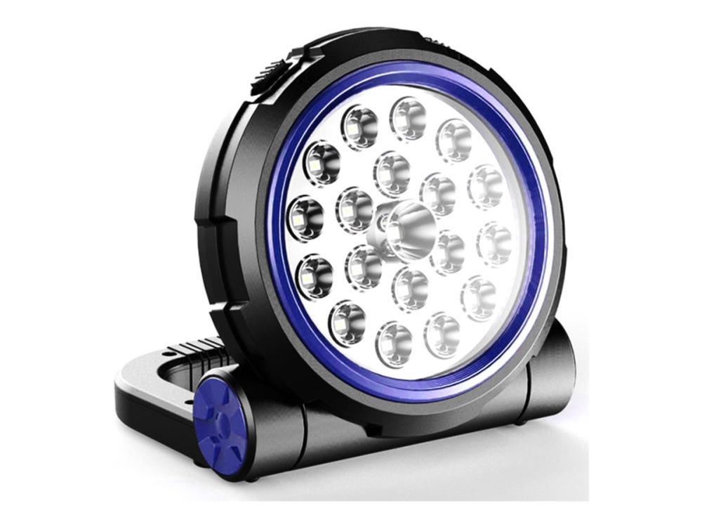 LED-arbetslampa med 180° vändbar lampa och 250° roterbart stöd