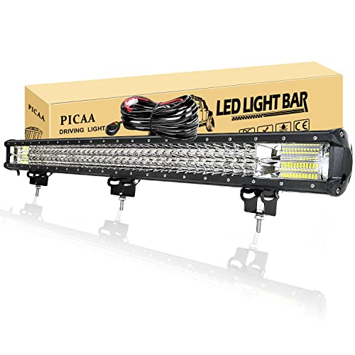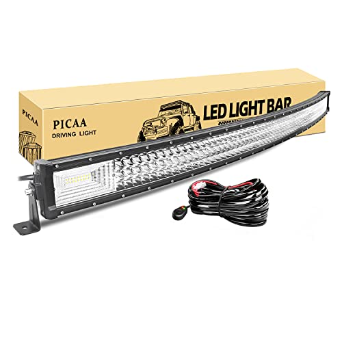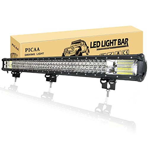 PICAA LED-ljusstång Tre rad 7D 12 V 42 tum 540 W 104cm 42 INCH böjd punkt översvämning kombo bar av väg båt körning LED arbetslampa lampa för lastbil traktor bil 4 x 4 ATV UTV SUV båt