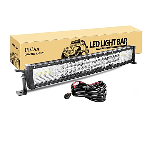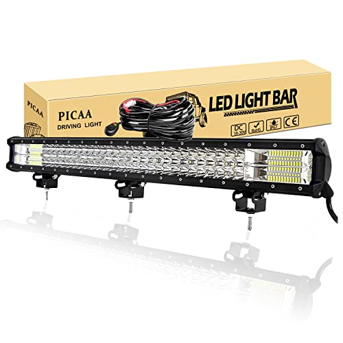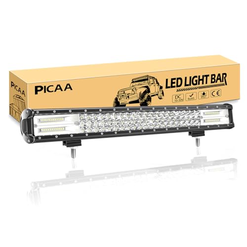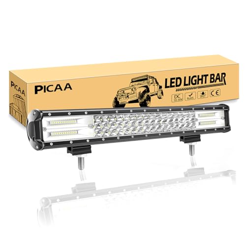 PICAA LED-ljusstång Tre rad 7D 12 V 20 tum 288 W 52CM 20 INCH punkt översvämning kombo bar av väg båt körning LED arbetslampa lampa för lastbil traktor bil 4 x 4 ATV UTV SUV båt
