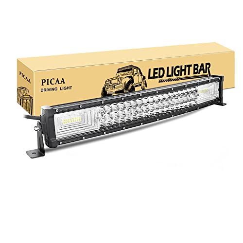 PICAA LED-ljusstång Tre rad 7D 12 V 22 tum 270 W 53cm 22 INCH böjd punkt översvämning kombo bar av väg båt körning LED arbetslampa lampa för lastbil traktor bil 4 x 4 ATV UTV SUV båt