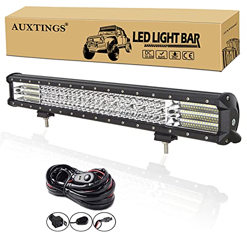 AUXTINGS 23 tum 570 W LED-ljusstång 4 rader strålkastare kombo stråle off-road lampor arbetslampa med ledningssele för Jeep-lastbilar SUV ATV UTV båtlampor, 12 V 24 V vattentät