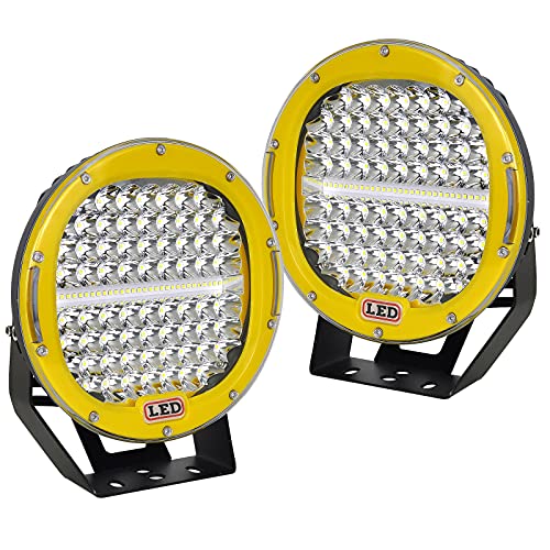 AUXTINGS 2 delar 9 tum 294 W LED-pods ljusstång gul rund 24 000 Lm vattentät spotstråle led arbetslampa off-road lampor körlampa kompatibel med lastbil SUV ATV traktor båt