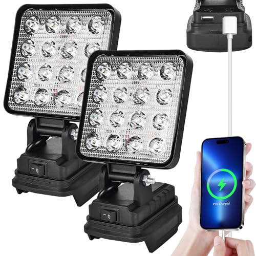 2 Batterier LED-Arbetslampa för Makita 18 V, 27 W Byggspotlight Med USB-Laddning, Bärbar Strålkastare för Byggarbetsplats