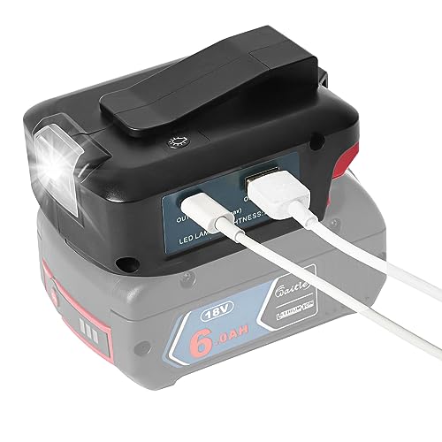 QUPERR USB-laddningsadapter för Bosch 18V-batterier med DC 12V-port & dubbla USB-portar & LED-arbetslampa & bältesklämma (batteri ingår ej)
