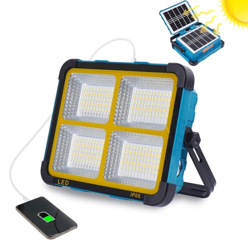 Fosingut 150W Solar Bärbar Arbetslampa, 11000mAh USB Uppladdningsbar Strålkastare, 6 Lägen/Magnetisk Bas/288 LED IP66 Vattentät Campinglampa för Nödbelysning, Bilreparation, Fiske, Garage
