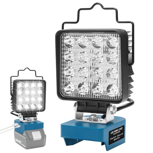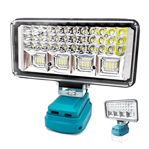 Trådlös LED-arbetslampa, kompatibel med Makita 18 V, bärbar arbetsplatsljus med USB och typ C-port, batteridriven för arbetsplats, camping, reparationer garage