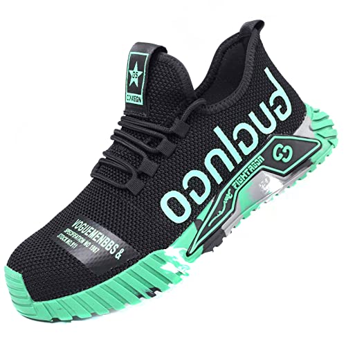 Micoklinlin Arbetsskor herr skosnören säkerhetsskor dam lätt mode stålhätta skor säkerhetsskor för män, Grön, 44 EU