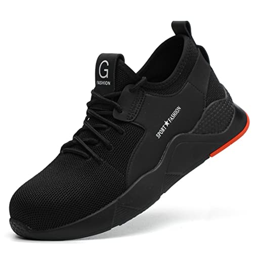 LARNMERN Arbetsskor herr säkerhetsskor ankelhög lätt stålhätta säkerhetsstövlar, Svart grå, 43.5 EU