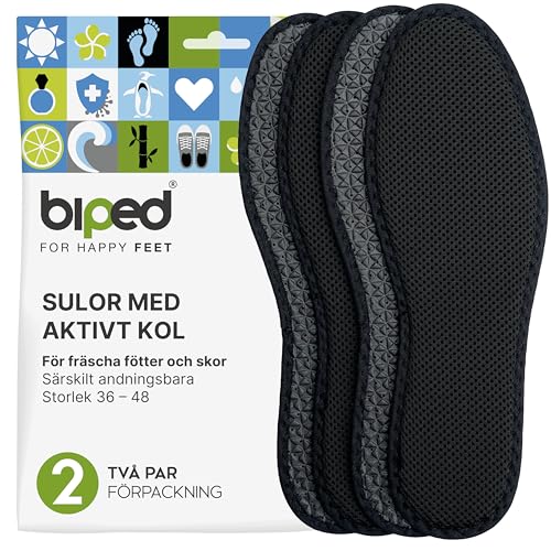 biped 2 par sulor med aktivt kol - Hygienisk fräschör för sneakers, sport- och arbetsskor - Mot svettiga fötter - Tvättbara z1017(47)