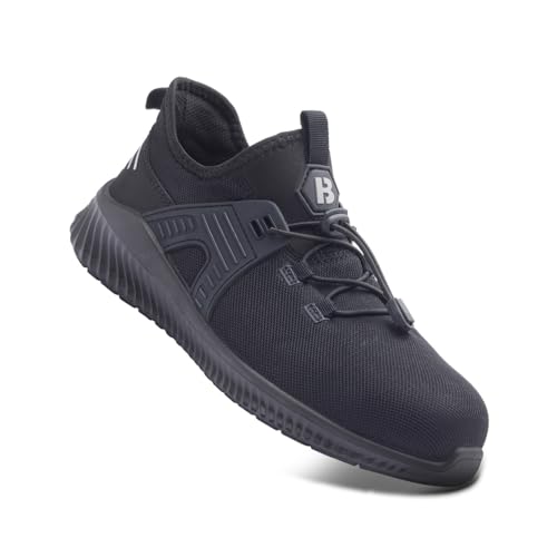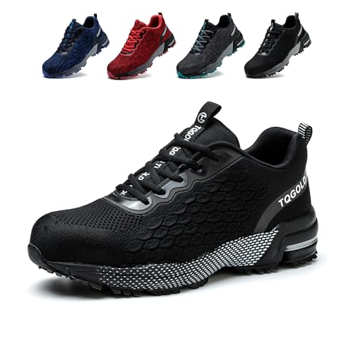 OFFCUP Säkerhetsskor för män, lätta arbetsskor, sportiga stålhätta, arbetslöparskor andas halkfria luftkuddar sneakers bekväma, svart, 43 EU