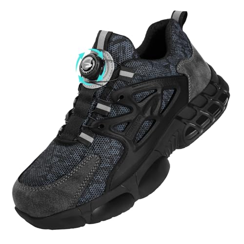 NuCamper Säkerhetsskor för Män, Halkfria Skyddsskor, Lätta Arbetsskor med Stålhättor, Sportiga Säkerhetsskor Industriella Low Bekväma Sneakers, Herr Kvinnors Halkskydd Säkerhetssko