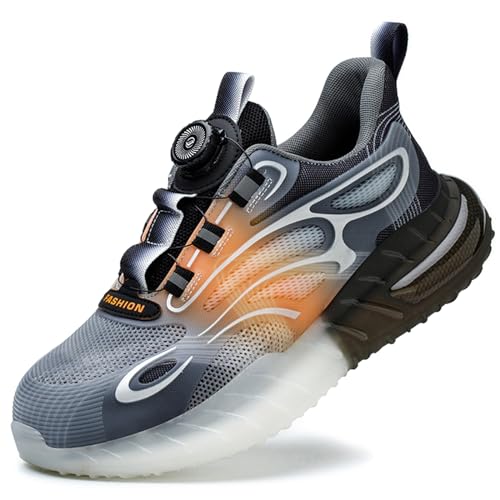 PENXZT Skyddsskor Herr Dam vridknapp Ståltåhätta Arbetsträningsskor Lättviktsventilerande industrisneakers Punkteringssäkra konstruktion Skyddsskor,White,35 EU
