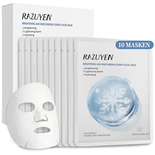 RAZUYEN Brightening ansiktsmask, Niacinamid och Arbutin serum tygmask, ljusar upp huden, lugnar och reparerar, vegansk ren och naturlig rosenvatten, fri från doftämnen, 10-pack