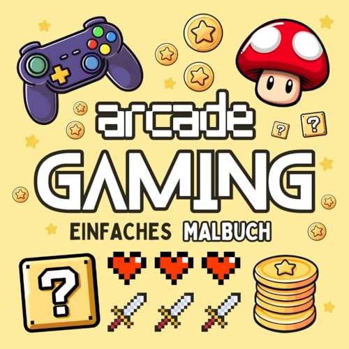 Arcade Gaming Malbuch: für Kinder & Erwachsene mit coolen & einfachen Game Motiven zum Ausmalen (Konsolen, Controller, Retro Spiele, Spielcharaktere & vieles mehr)