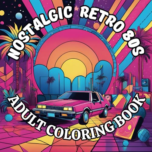 Nostalgic Retro 80s Adult Coloring Book: Neon Skylines, Arcade Machines, Boom Boxes, Vintage Cars, Vinyl Records and More