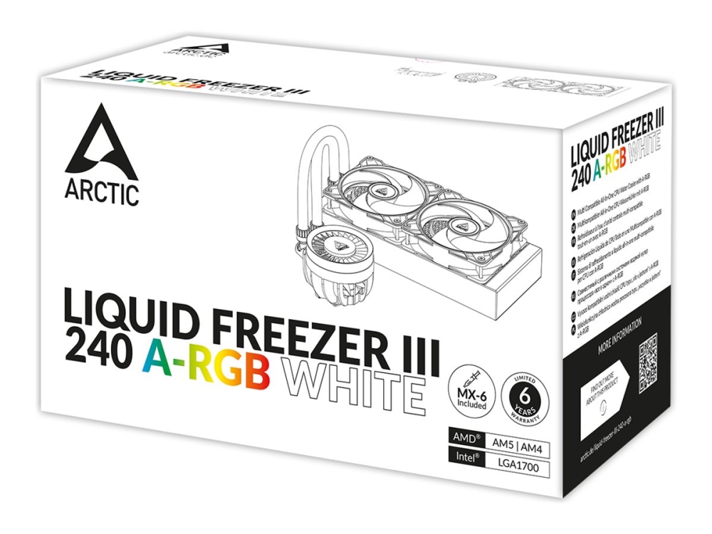 Arctic Liquid Freezer Iii 240 A-Rgb - Kylsystem Med Vätska Till Processorn - Elementstorlek: 240 Mm - (För: Am5, Am4, Lga1700, Lga1851) - Koppar - 120 Mm - Vit