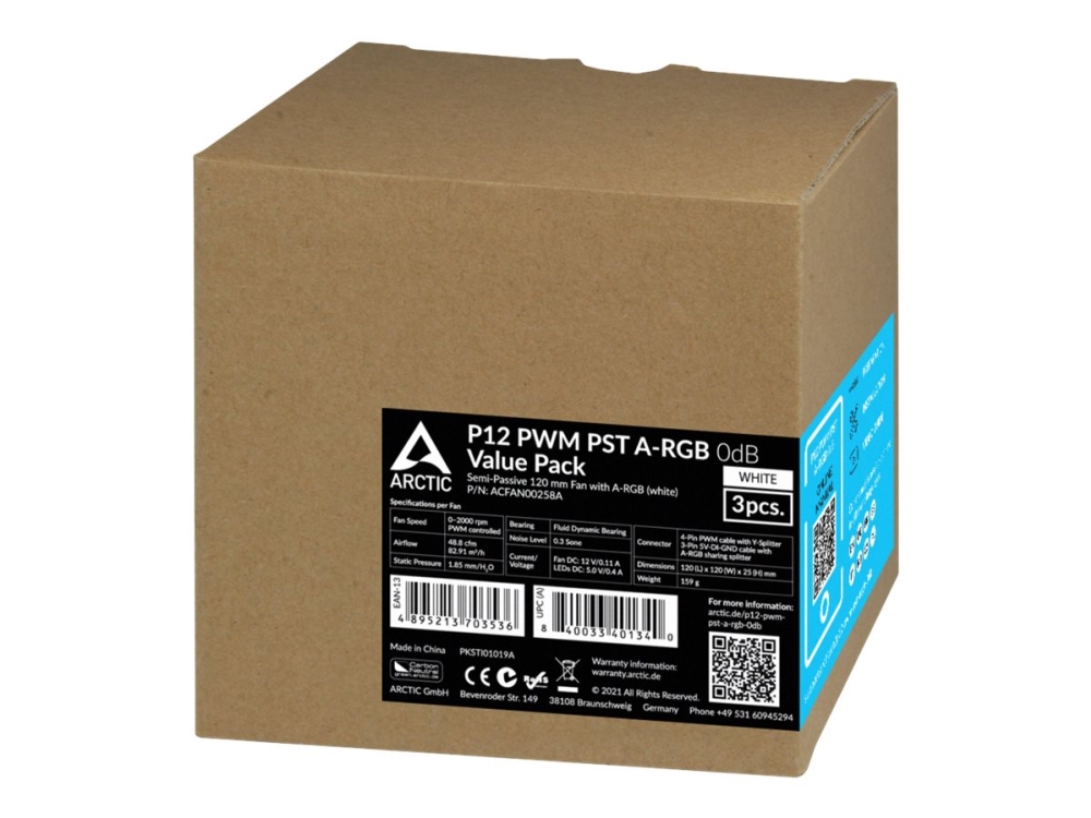 Arctic P12 Pwm Pst A-Rgb 0Db - Lådfläkt - 120 Mm - Vit (Paket Om 3)