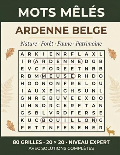 Mots Mêlés Ardenne Belge: 80 Grilles 20x20 sur la Nature, la Forêt, la Faune et le Patrimoine des Ardennes — Niveau Expert avec Solutions