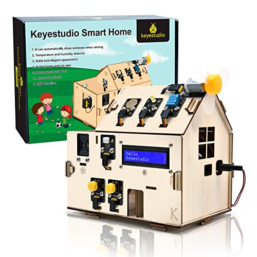 KEYESTUDIO Smart Home Starter Kit för Arduino ESP32 och Python, elektronik hem automatisering kodningskit, elteknikkit, trähus gör-det-själv sensorsats, STEM pedagogiskt set för vuxna tonåringar 15+