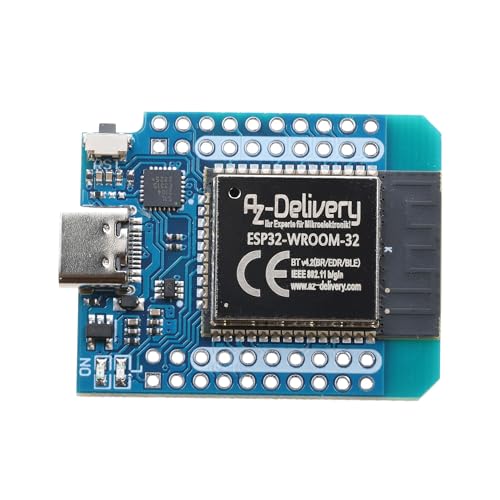 AZDelivery 1 x ESP32 NodeMCU modul WLAN WiFi Dev Kit C utvecklingstavla med CP2102 och USB-C-anslutning | ESP 32 ESP32 wroom 32 | kompatibel med Arduino och inklusive e-book!