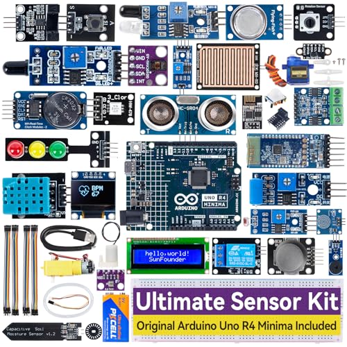 SUNFOUNDER Ultimate Sensor-kit med original Arduino Uno R4 Minima, Smart IoT och Basic Sensor-projekt med online-handledning, lämplig för ålder 8+ nybörjare (Original Arduino Uno R4 Minima ingår)