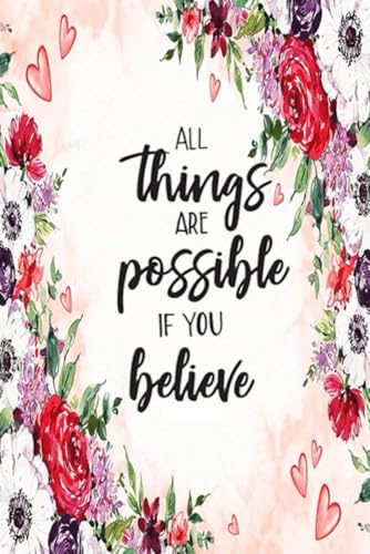 Christian art gifts, bible scripture journal, all things are possible to those who believe mark 9:23, bible study notebook, bible verse notebook, floral notebook inspirational journal