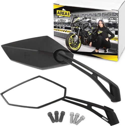 Area1 Premium motorcykelspegel svart matt motorcykel backspegel set (höger + vänster) e-testad 2 x M10 högergänga. Kompatibel med Mondial XSM