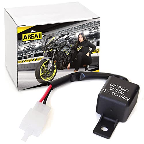 Area1 Motorcykelblinkers med relä, digitala, för LED-halogen och glödlampor, lastoberoende, 12 V, 0,1–150 W, 2 stift/2-polig LED blinkersgivare, elektroniskt kompatibel med många märken