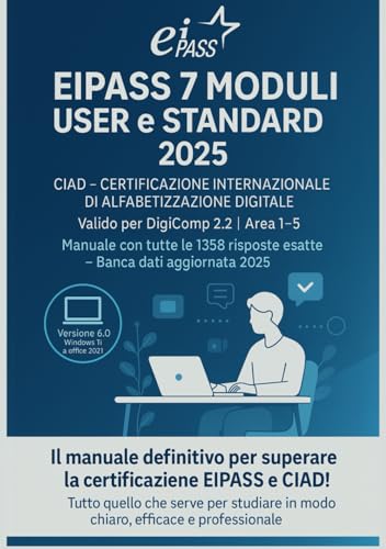 Eipass 7 Moduli User e Standard Risposte 2025 valide anche per CIAD (Certificazione Internazionale Alfabetizzazione Digitale) Digi Comp 2.2 Area 1-5: ... Ufficiali Illustrate. Edizione a Colori