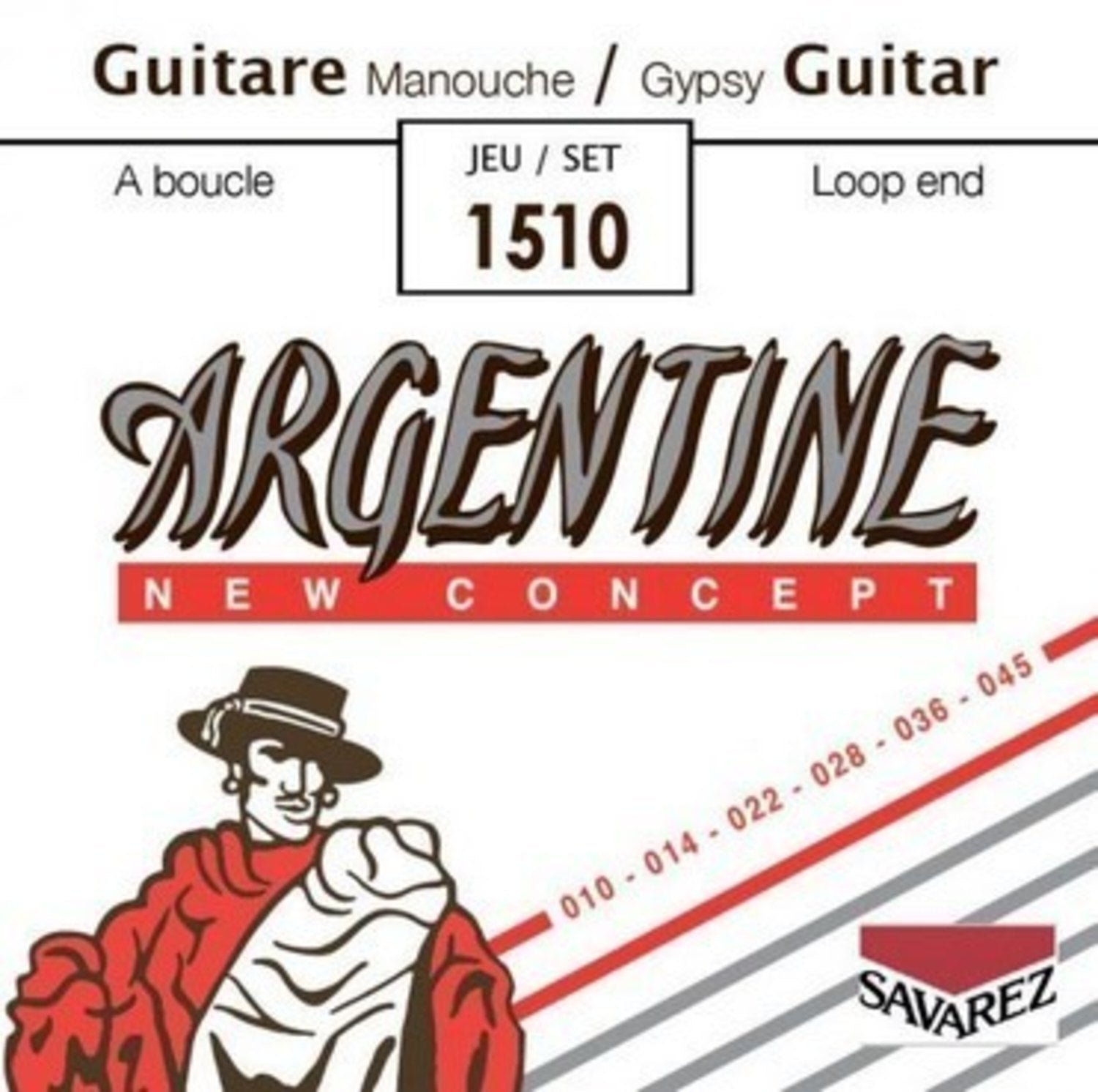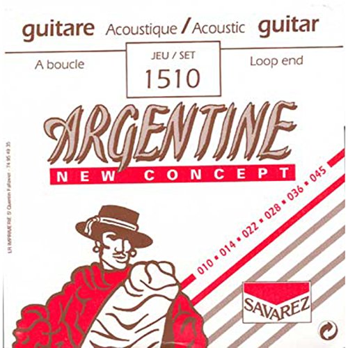 Savarez-strängar för akustisk gitarr, Argentine-set 1510 Extra Light .010-.045w med ögla för Gypsy Jazz/Manouche/Maccaferri-gitarrer (mensur 670mm)