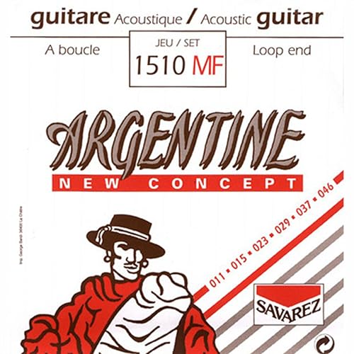 Savarez-strängar för akustisk gitarr, Argentine-set 1510MF Light .011-.046w med ögla för Gypsy Jazz/Manouche/Maccaferri-gitarrer (mensur 670mm)