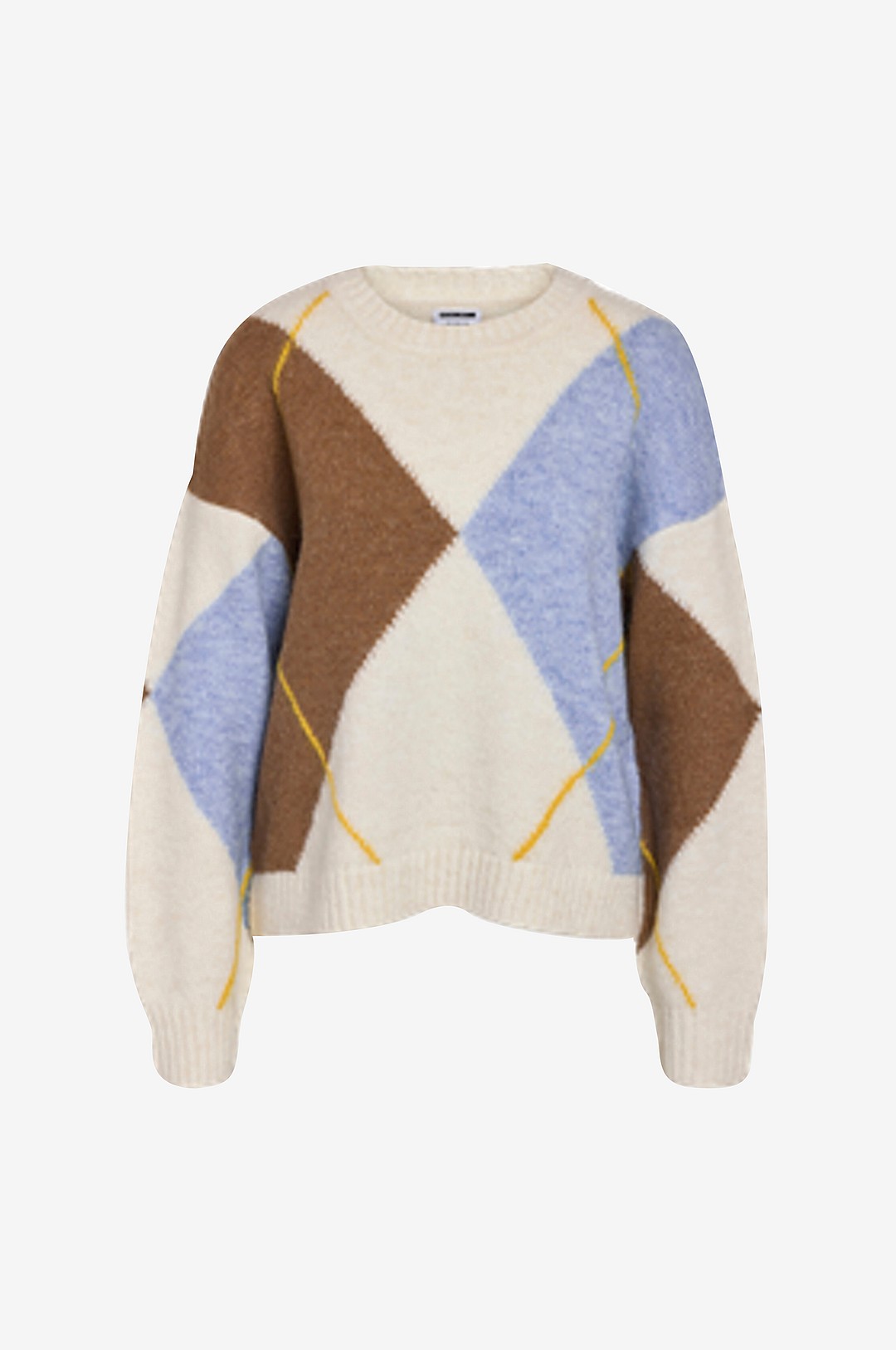 Noisy May Curve - Tröja nmArmie L/s O-neck Argyle Knit Curv - Vit