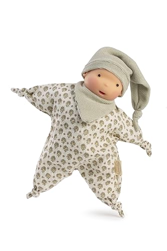 Antonio Juan dockor - Ariel stjärna, babydocka med organiskt silikonhuvud, ekologiskt tyg, grön, blomdesign, säker att bita