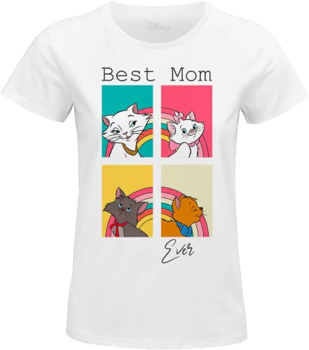 Disney Aristocats - Happy Mother's Day Hertiginnan WODARISTS032 T-shirt för dam, vit, storlek L, Vitt och blått, L