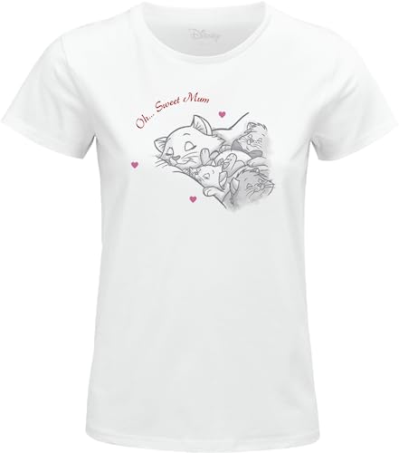 Disney Aristocats - Happy Mother's Day Hertiginnan WODARISTS031 T-shirt för dam, vit, storlek XXL, Vitt och blått, XXL